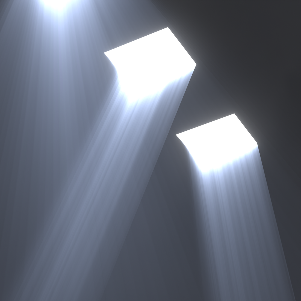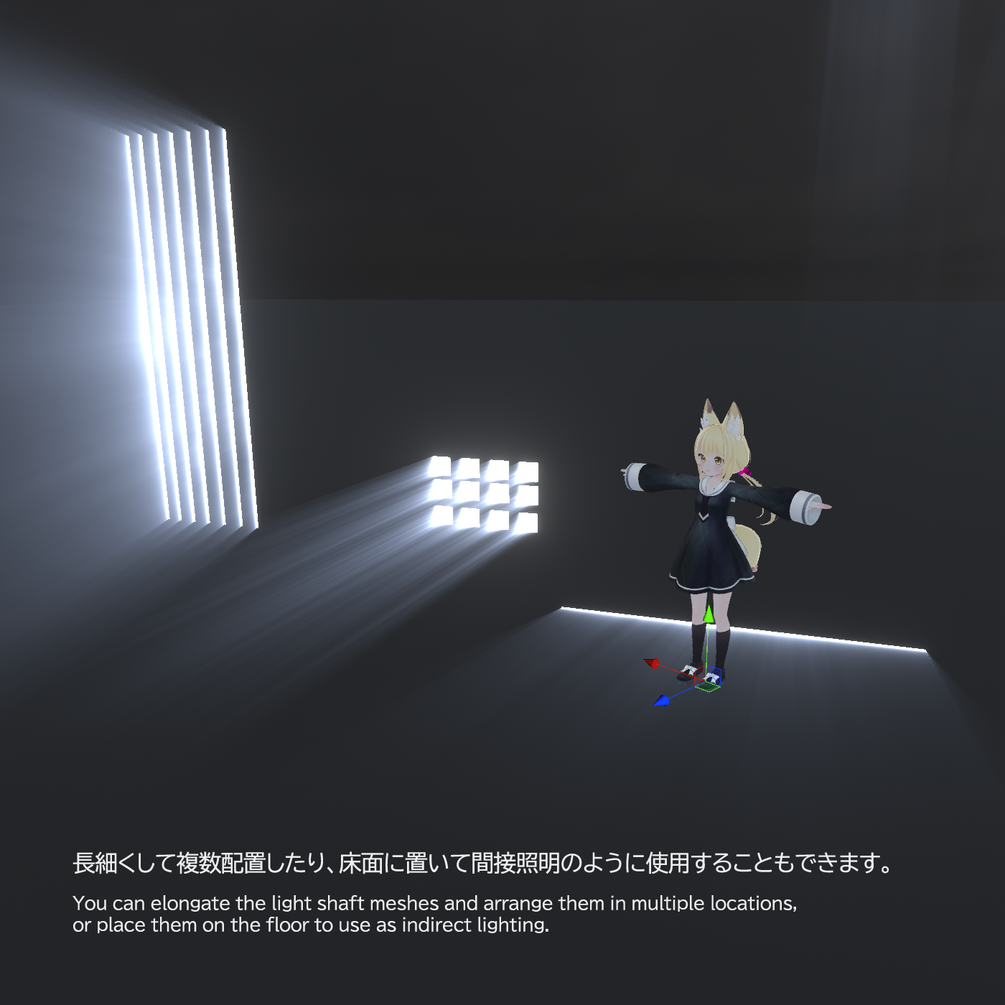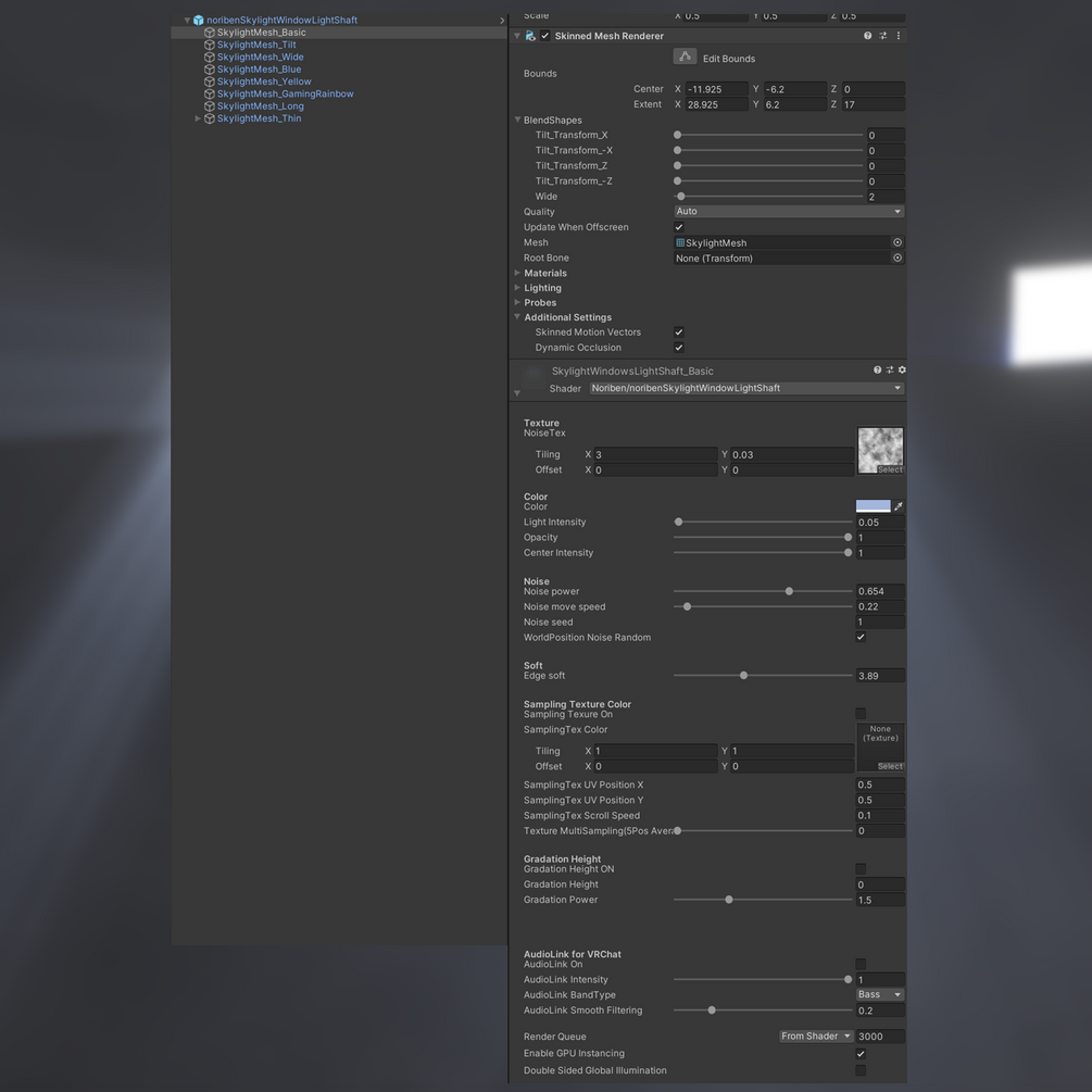 - The direction and spread of the light shafts can be changed using the mesh's blend shapes.