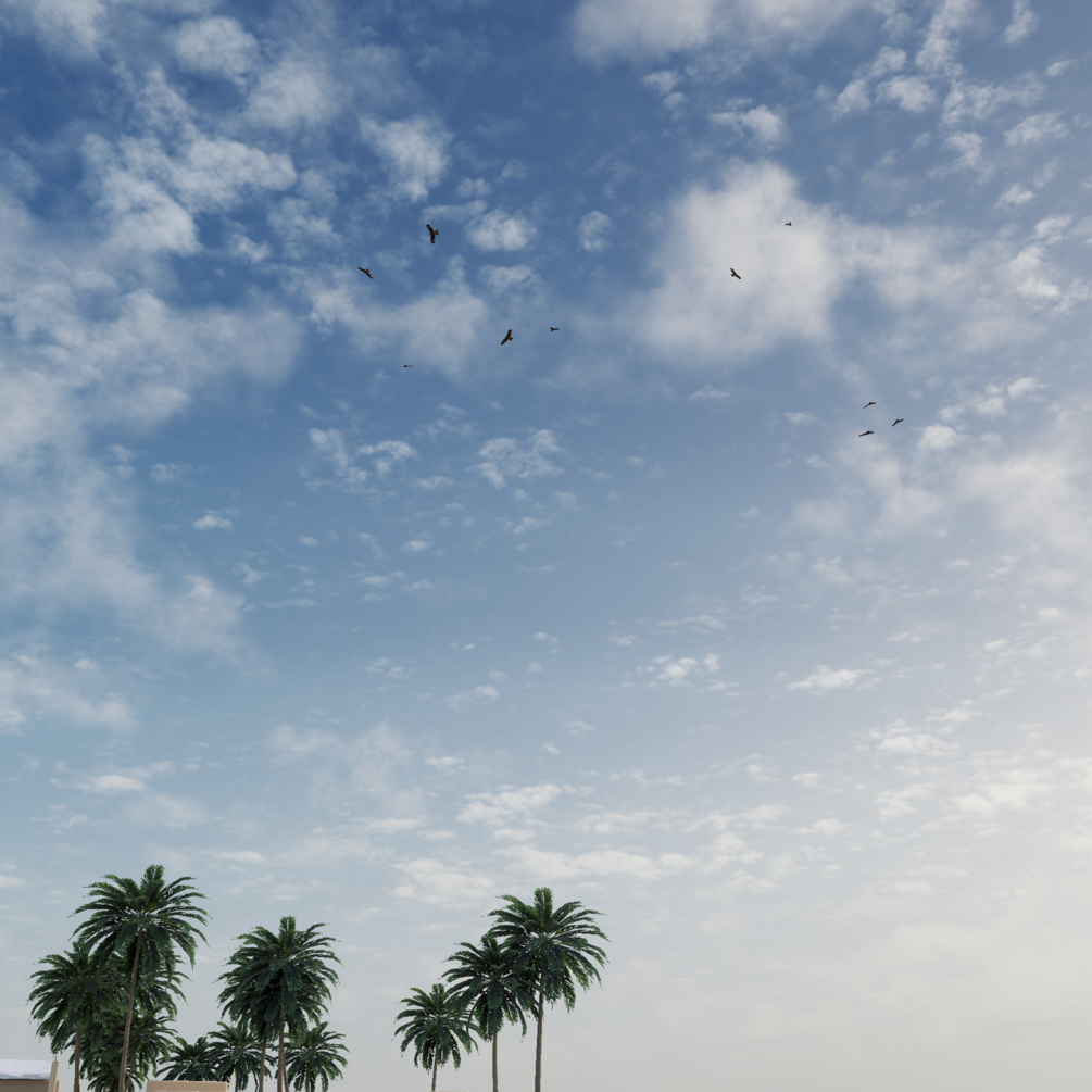 - Sounds are played as 3D audio from the approximate position of each black kite and move and rotate along with their flight paths.