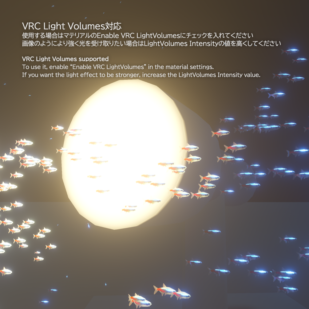 To enable this feature, check “Enable VRC Light Volumes” on thenoribenNeonTetraParticle material.